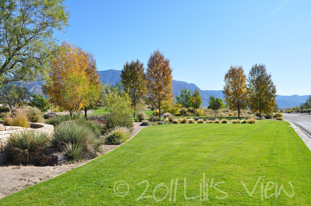 This was the view to the east of where we were standing . The grass on the east side of the trees is the golf course. Autumn is setting in and this is the greenest the grass has been all year. All those late rains.