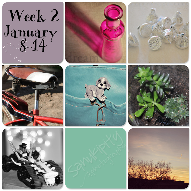 Day 8: my prompt for Wild Strawberry at Project 64 was this bottle, textured with Kim Klassen textures and a Kim brush for the dream. Day 9: My prompt for A Dozen with last week’s Scavenger Hunt Sunday with Ashley Sisk, also textured with Kim Klassen’s Embrace texture for her Texture Tuesday prompt. Day10: An old bike, taken in Corrales, NM. Also textured with a Kim Klassen texture (or 2). Day 11: My camera bag, it is actually a purse that I turned into a padded camera bag myself. I took this for Project 64’s blue green prompt but have something else now instead. Day 12: My son and I made a terrarium for his Cub Scout grow something inside project. Day 13: One of Mr B’s legos. He loves his legos right now. I was experimenting with my tripod, 55mm lens and lights for some bokeh. Day 14: A winter sunset. It was lovely. Definitely made with love.