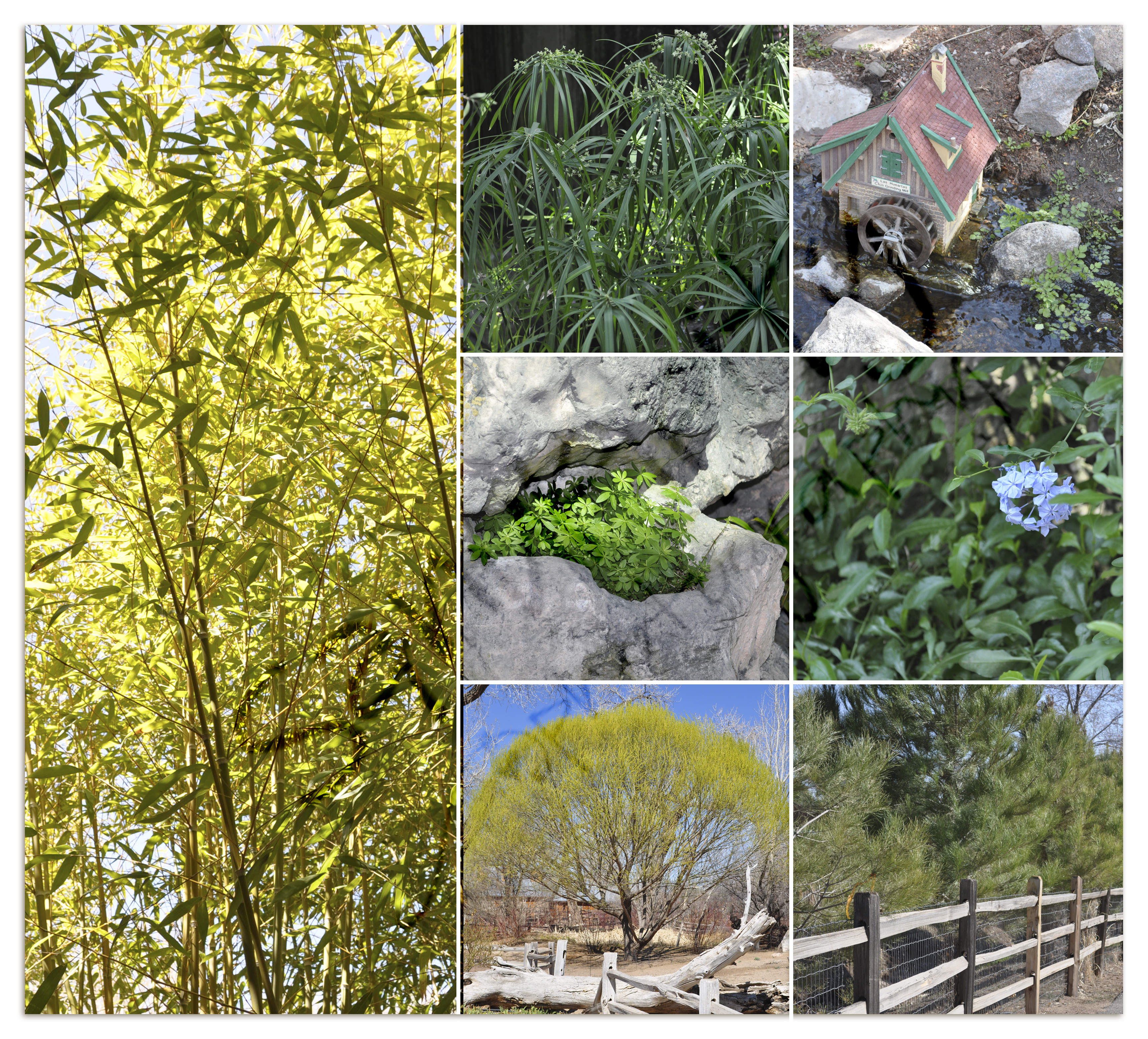 …and wishing it were spring. But I know it is right around the corner. I know because I start sneezing in the morning. I took my son and a friend of his to the Botanical Gardens yesterday. I had never been there. I am thinking about buying a season pass to the ABQ parks. I liked the Gardens that much. I have to go back when the trees are also in bloom. They were a little bare. Some great motivation. A lot of eye candy beautifulness. But I did get some green and decided to make a collage out of it.