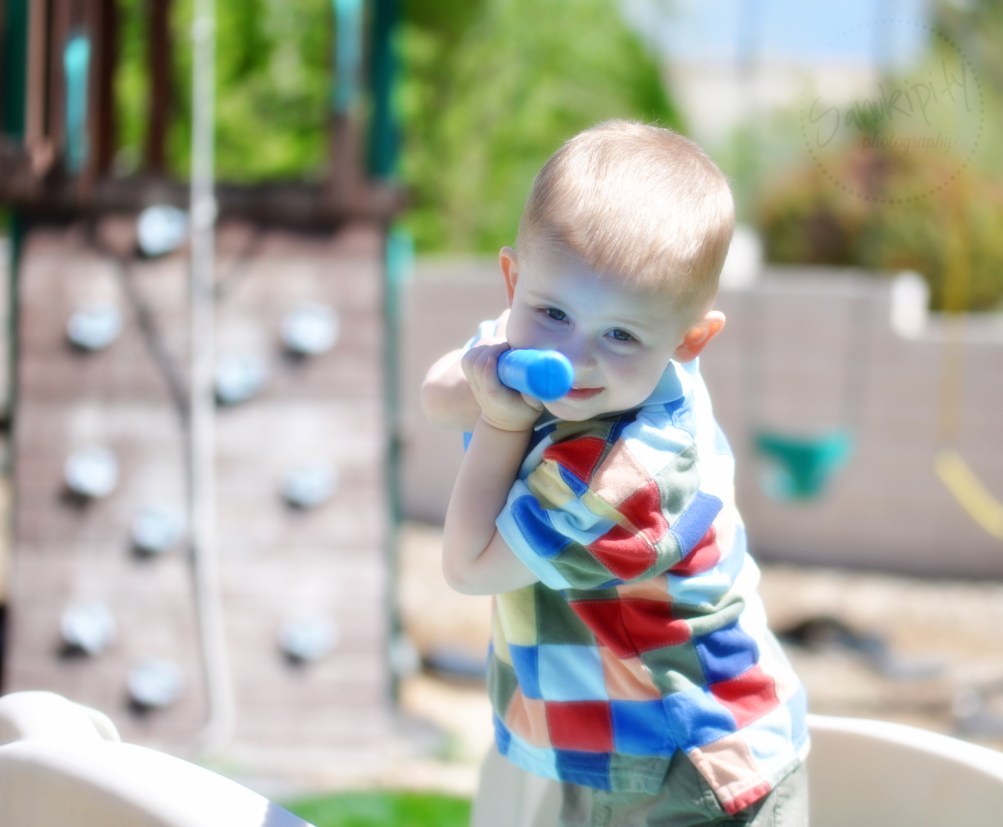It is very rare that I get pictures of people other than Mr B. I had several pictures of this family that first week of April but this is by far my favorite. There is also a little story behind the shirt. Both his older brothers used to wear that shirt (they are 10 and 8). When the 8 year old grew out of it, Deena gave all their clothes to another mother because she thought they weren’t going to have any more children. It just so happened that the other mother found this box of clothes to give back to Deena. And her favorite Easter shirt was in the box. Little C was doing this because I was taking his picture. One of the first days I was experimenting with the Macro lens.