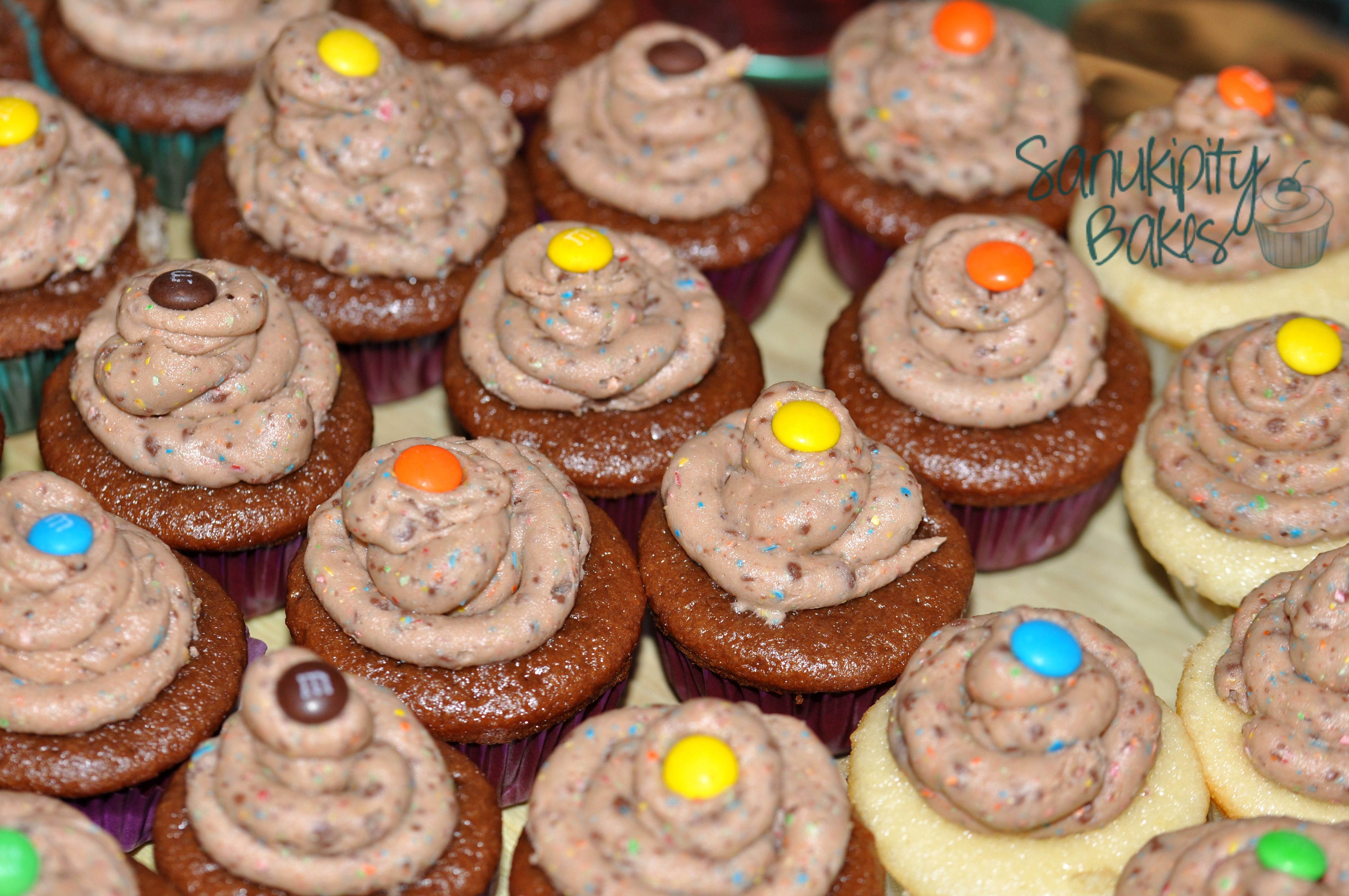 I made the first batch of vanilla again. Made sure I made it right this time. Yummy. What a difference a small ingredient can make. Yes, this blonde has blonde moments. Even if I hate to admit it. But Shelly’s kids had a great idea with the MnM frosting. It was amazing. I also made up her buttercream and split it into 3. I then made one Cookies and Cream, one Biscoff and one with Andies candies. The Andies was my favorite. It was divine. I will do that one again.
