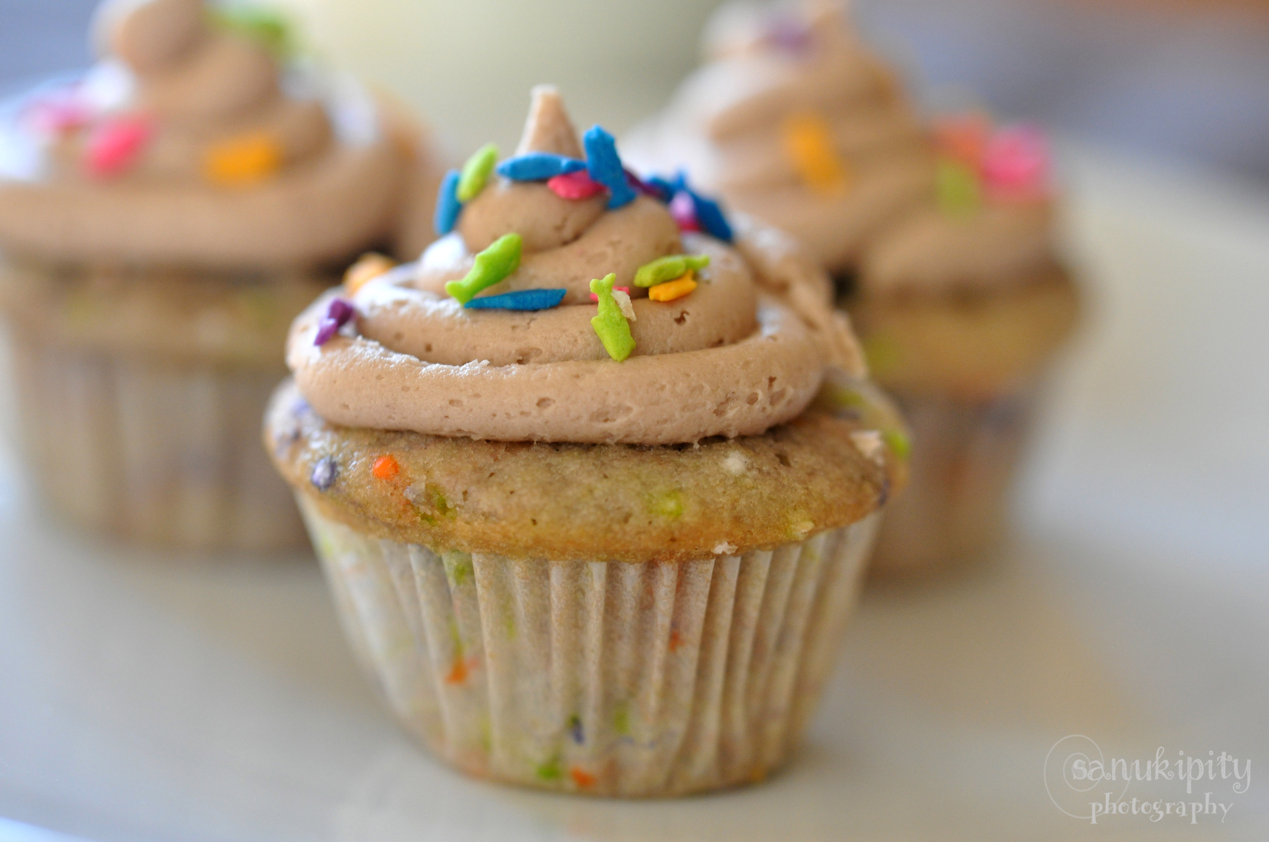 I kept seeing all these Funfetti recipes. So I was inspired to try some for myself. They make very lively cupcakes.