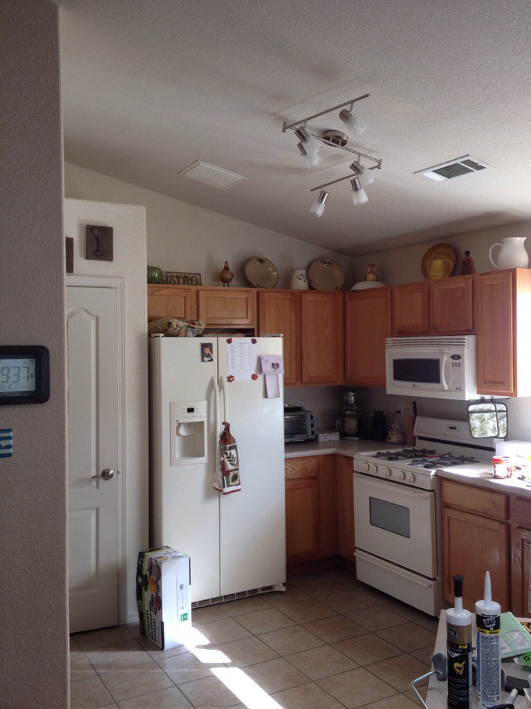 This is what the space looked like after I put the cupboards up. Here is a before redo